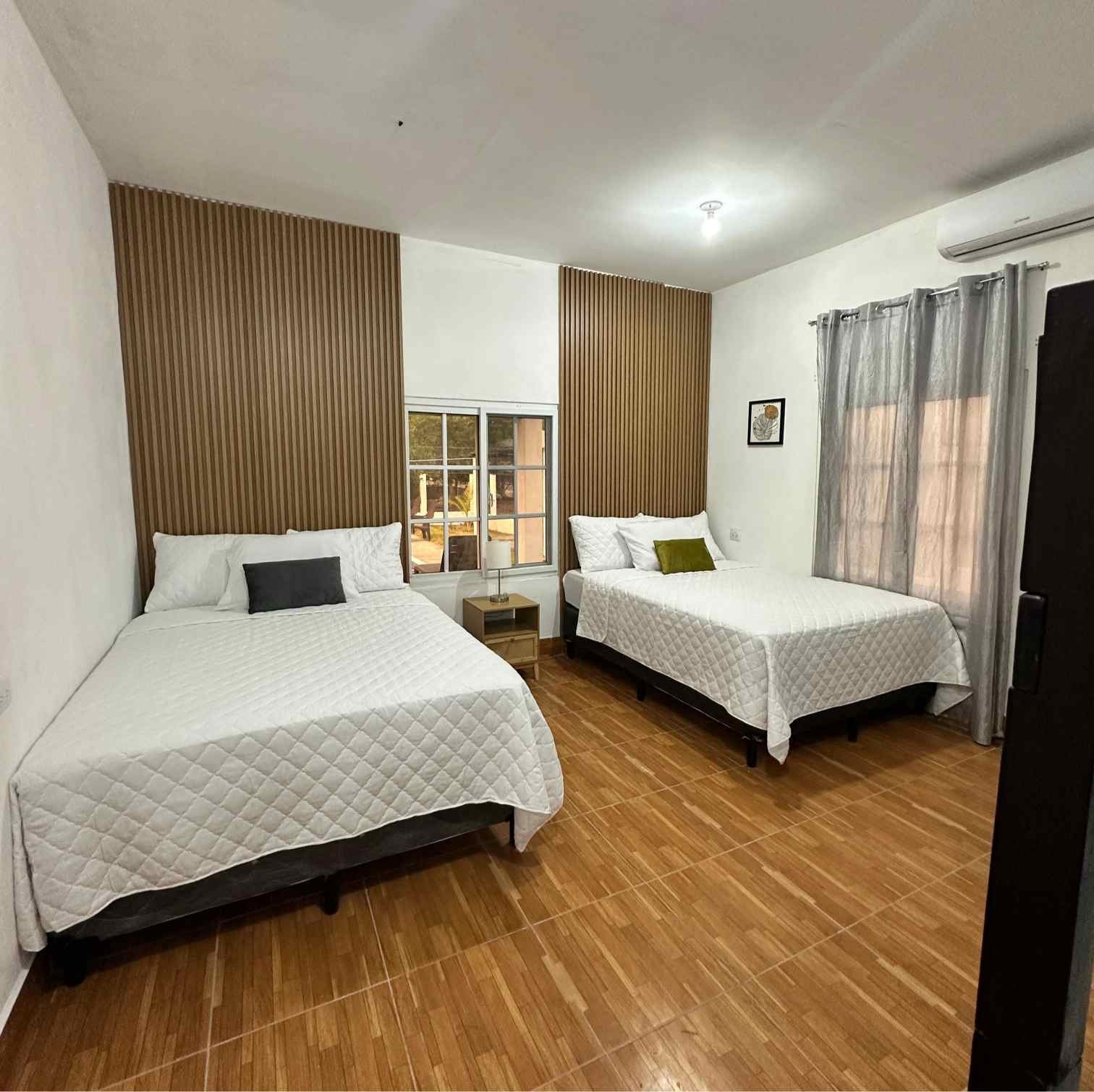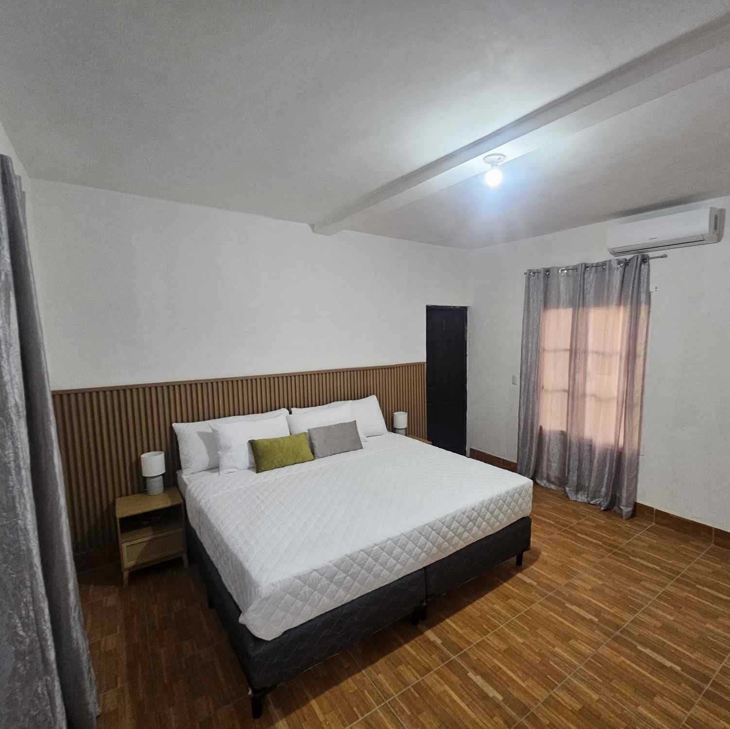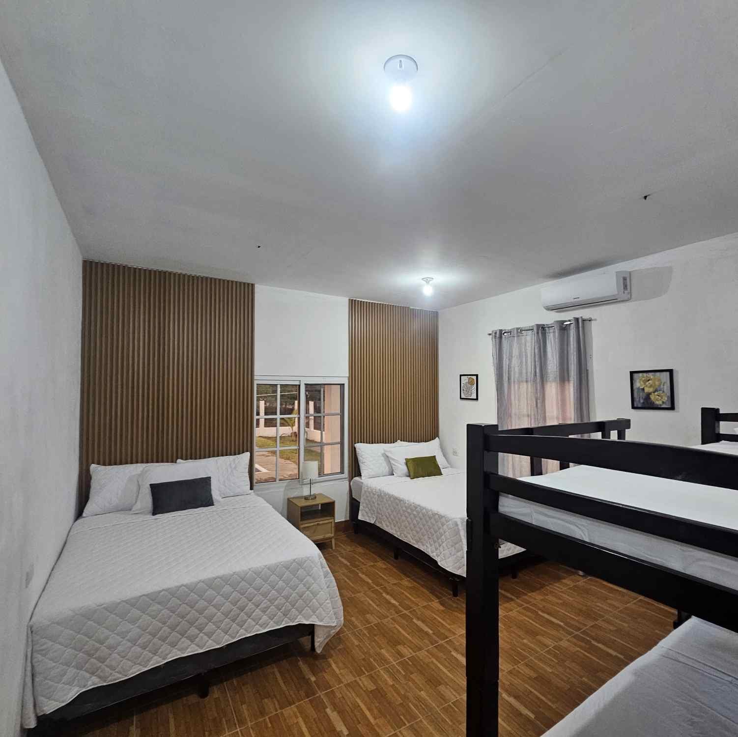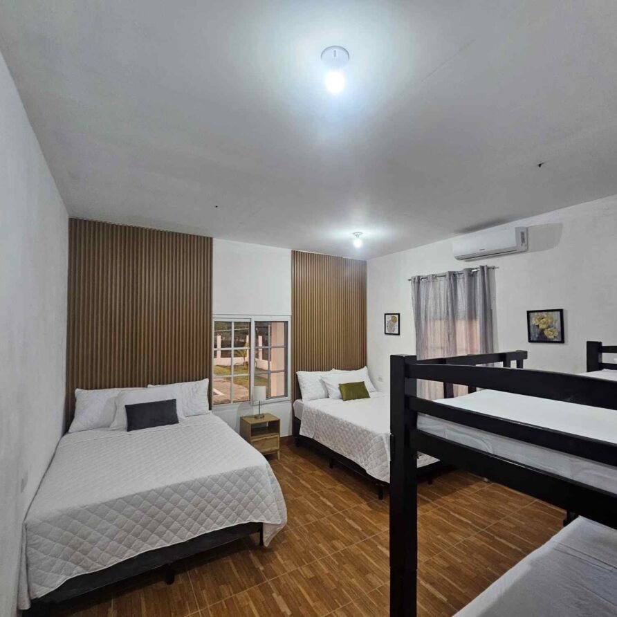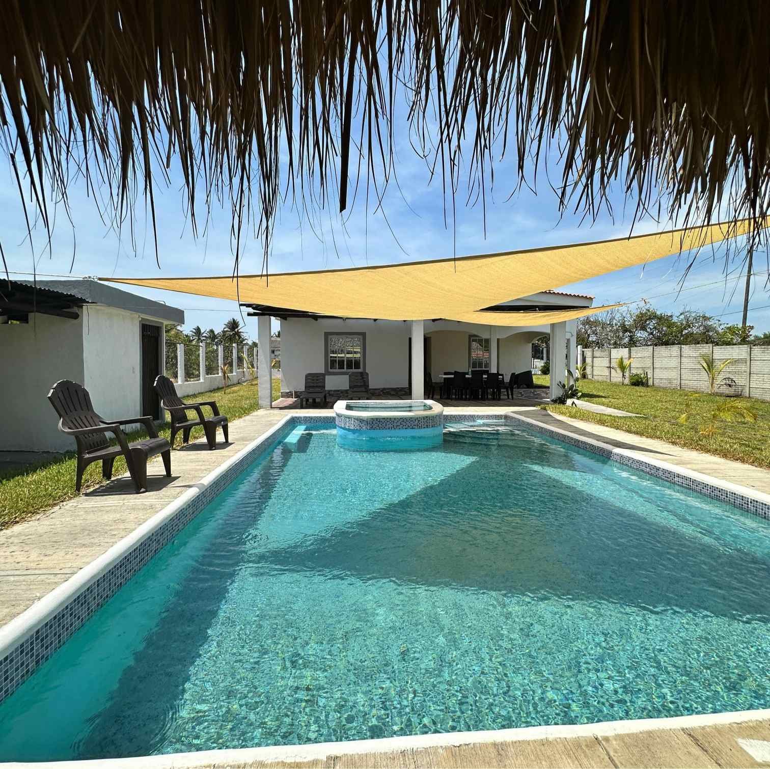 Maria House Monterrico es una casa de playa amplia y cómoda, perfecta para grupos grandes o familias. Ubicada a solo 120 metros del mar, ofrece privacidad, aire acondicionado en la sala, piscina familiar de agua dulce, rancho con hamacas, fogata y espacios interiores y exteriores para convivir y descansar. Cuenta con 4 habitaciones y capacidad para hasta 16 personas. La cocina está completamente equipada y hay parqueo para 5 vehículos. Está en el Km 145, a solo 5 minutos del centro de Monterrico, cerca de Super 24 y tiendas locales.