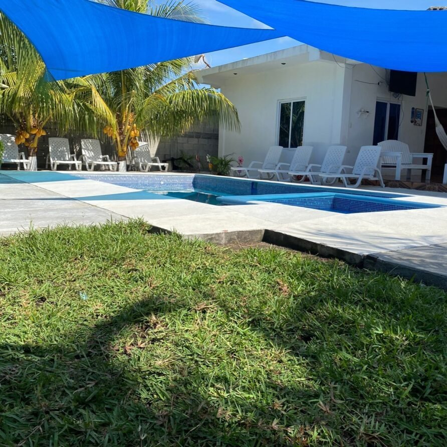 Villa Hawaii en Monterrico es una casa vacacional a solo 60 metros del mar, ideal para familias y grupos que buscan comodidad, privacidad y cercanía a la playa. Cuenta con tres habitaciones con aire acondicionado y baño privado, una piscina privada de agua dulce con área para niños, y espacios amplios para compartir como sala exterior, churrasquera, hamacas y comedor familiar. La cocina está totalmente equipada con electrodomésticos y utensilios, ofreciendo todo lo necesario para una estancia relajante. Además, la propiedad está totalmente circulada y dispone de parqueo privado para hasta cuatro vehículos, lo que garantiza seguridad y tranquilidad durante la estadía.