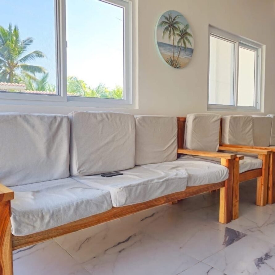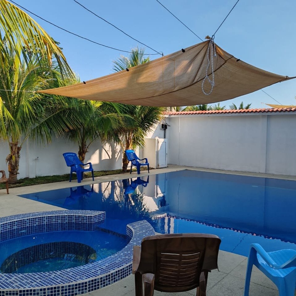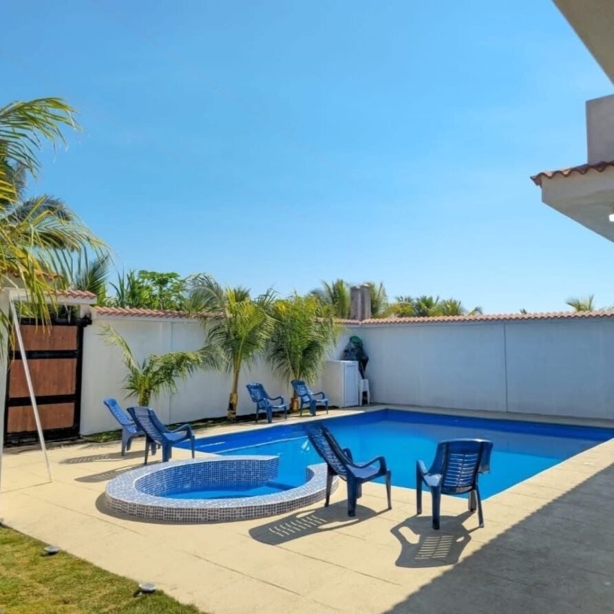 En el área exterior, Villa Palmera ofrece una piscina con área para niños, churrasquera y parqueo privado para hasta cinco vehículos, ideal para grupos que viajan juntos. También cuenta con wifi, televisión y salida directa al mar, permitiendo llegar a la playa caminando en menos de un minuto.