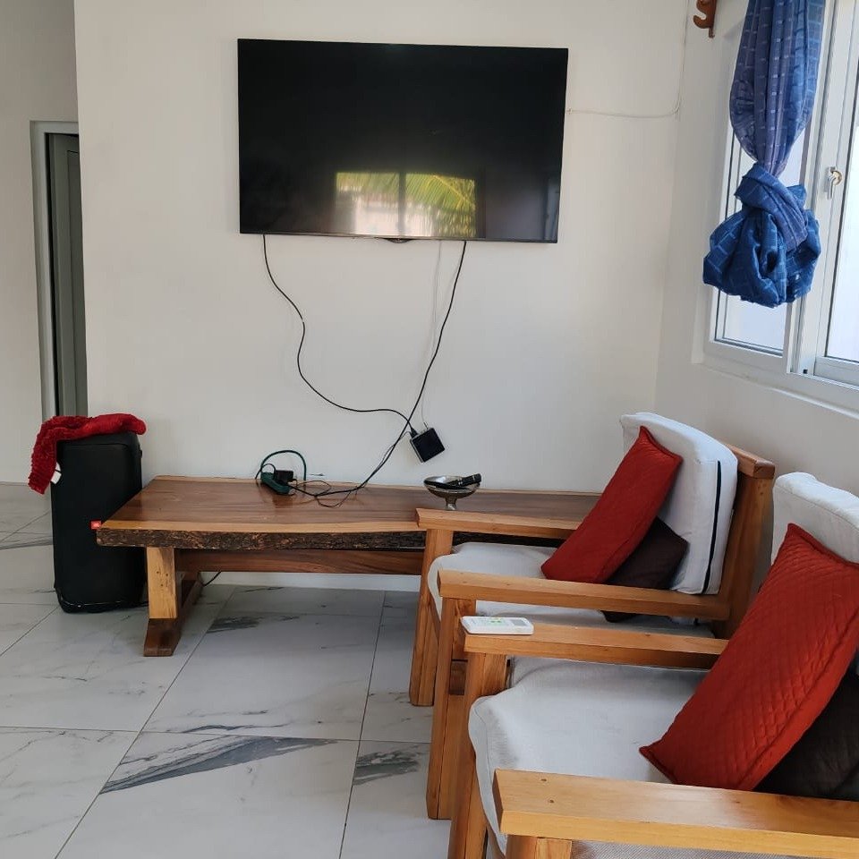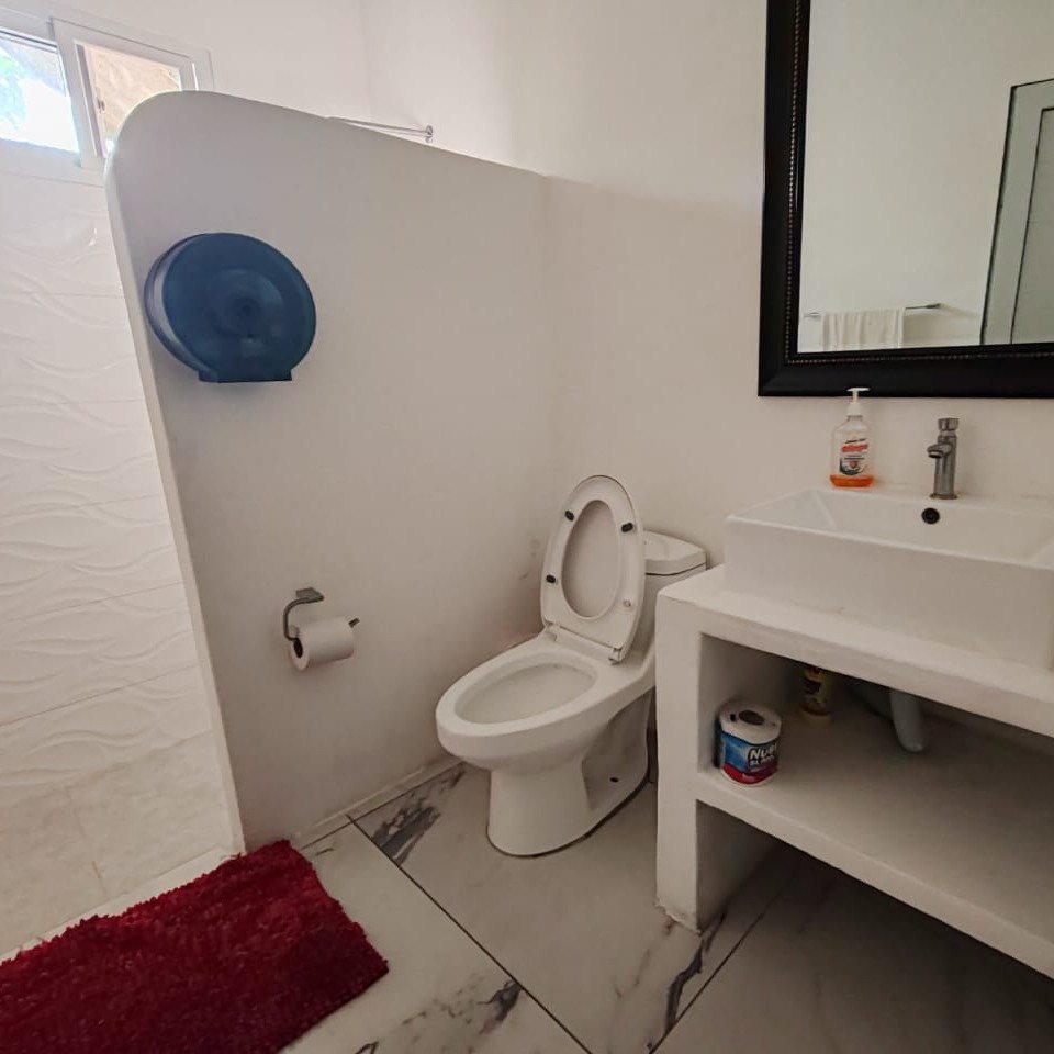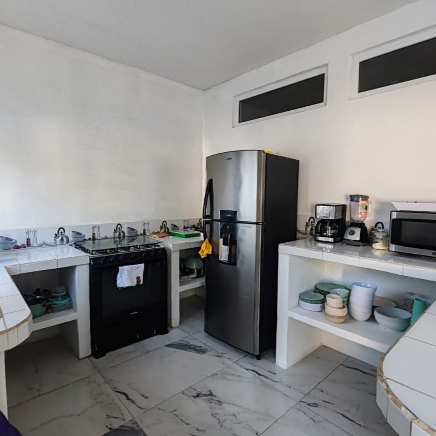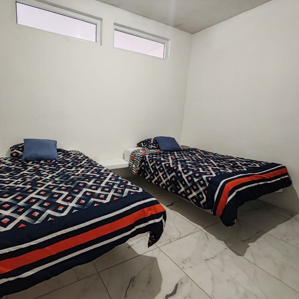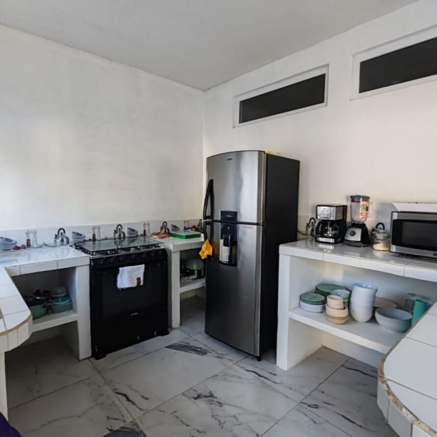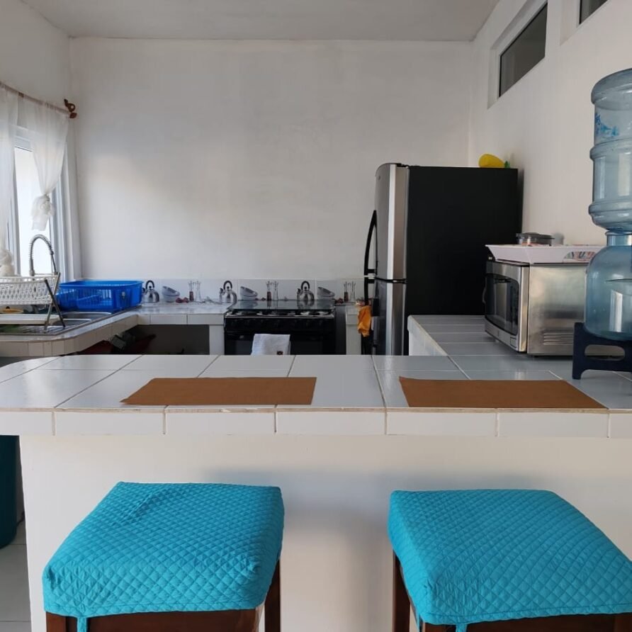 La propiedad cuenta con cuatro habitaciones con aire acondicionado, equipadas con ocho camas matrimoniales y seis camas en literas, además de tres baños completos, dos dentro de la casa y uno de servicio. Dispone de sala, comedor y cocina totalmente equipada, con aire acondicionado en la sala y cocina, brindando comodidad durante toda la estadía.